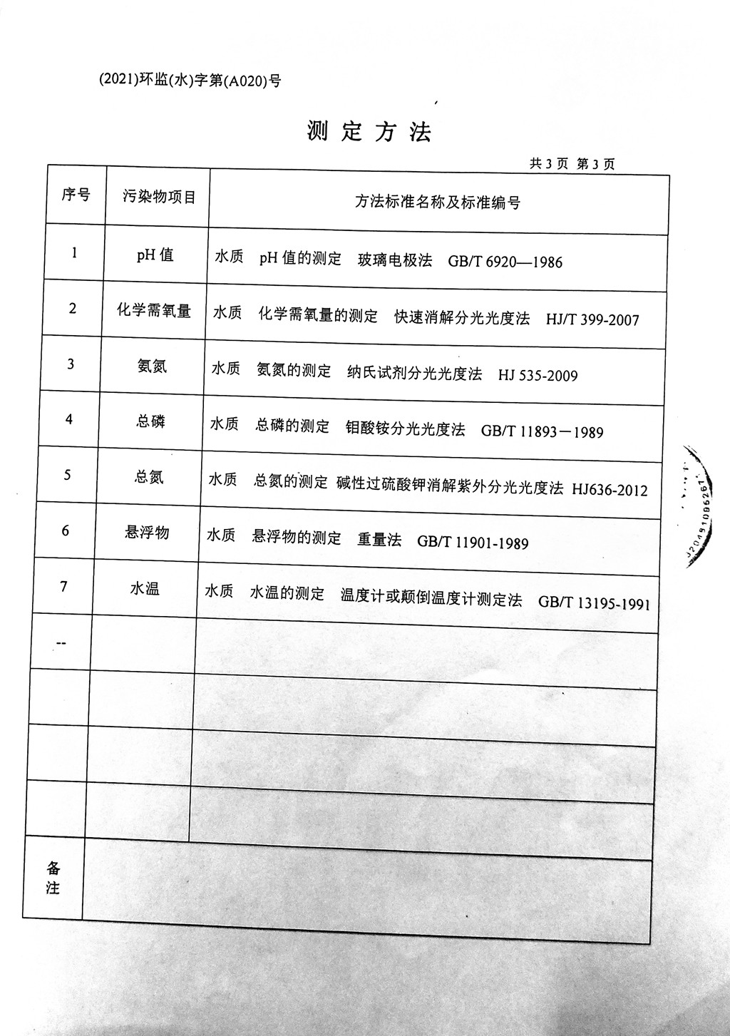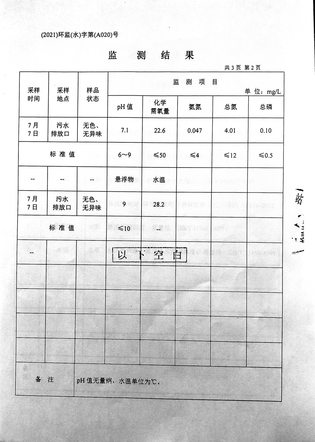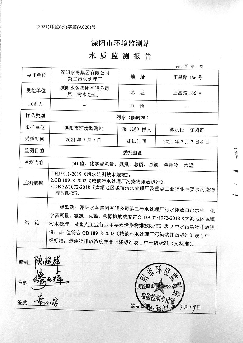 污水水质监测报告(2021年7月7日)